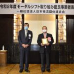 「令和2年度モーダルシフト最優良事業者賞(大賞)」の表彰を受けた当社代表取締役の深山