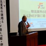 講演では、当社の成り立ちから会社概要、これまでの取組みや実例の紹介、目指すべき未来の食品物流に向けての方向性を説明。最後に「『「強い物流』は物流会社だけではできない。メーカー、流通(卸・小売)との協力・理解を得ること、そして『横連携』(=物流会社同志の相互連携・連動)がなければ実現しない。今後もご一緒に『強い物流』実現に向けて努力したい」と訴えました。会場からは幾つも賛同の声や今後に向けての具体的なご質問ご助言を頂きました。