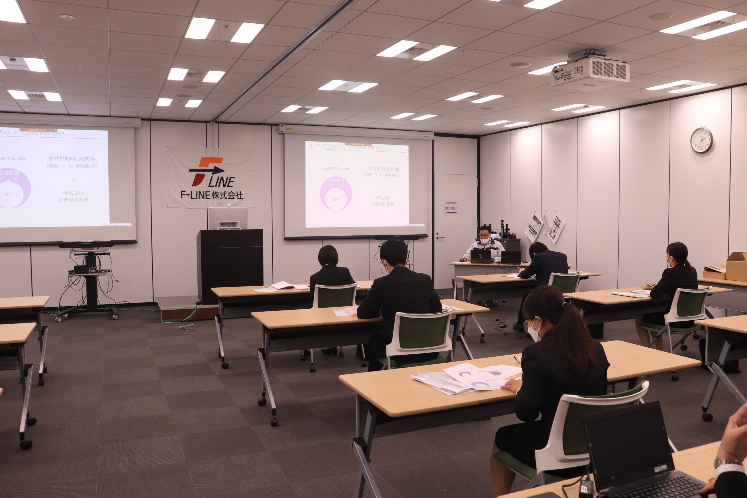 「F-LINEは、荷主からお預かりした商品を消費者まで安全にお届けするとの使命を担う社会に不可欠な会社であり、皆さんはその使命を実現するための一員です。この社会的価値のある仕事に従事する皆さんには、誇りをもって仕事に取り組んでいただきたいと思います。辛いこともあるかもしれないが、まずは3年間真剣に頑張ってください。」