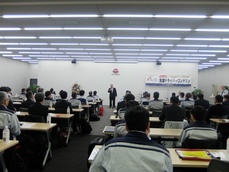 2019年11月25日、当社はUDトラックス株式会社様のUDエクスペリエンスセンター(埼玉県上尾市)にて、第1回全国ドライバーコンテストを開催いたしました。各支店での選抜試験を勝ち抜いた27名の選手が、日頃培った運転技術、日常点検の技量、専門知識の習得状況について競い合いました。コンテスト終了後は会場を移し、表彰式・交流会を行いました。コンテストの結果は以下の通りです。