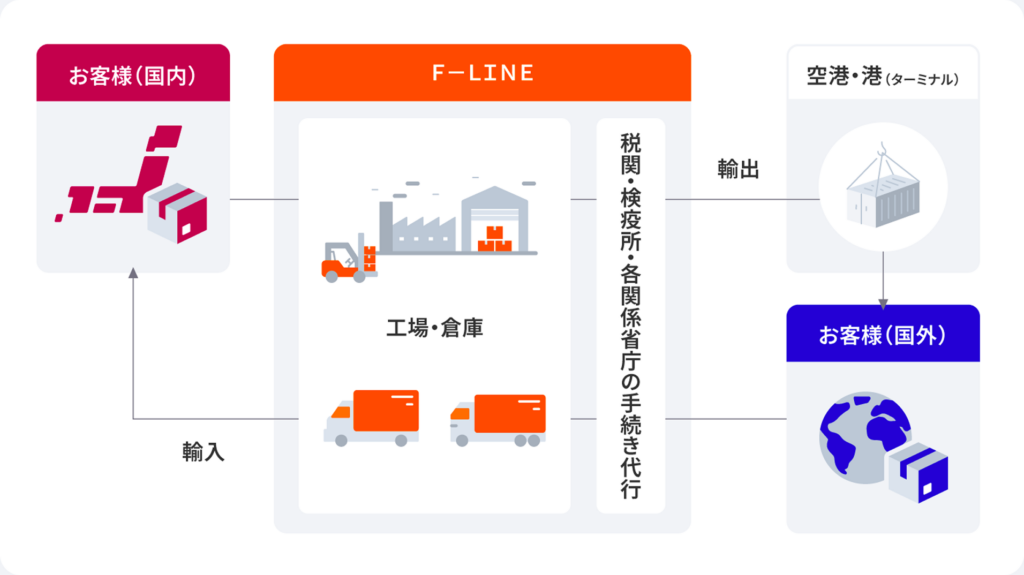 お客様の輸出入食品ビジネスのパートナーとなり、通関手続きの代理人として専門知識を持ったベテラン通関士が税関や関係省庁への複雑な書類手続きや検査を代行します。また、自社内の連携により常温、冷凍の各温度帯の保税倉庫や海上コンテナ輸送のサービスに対応可能です。