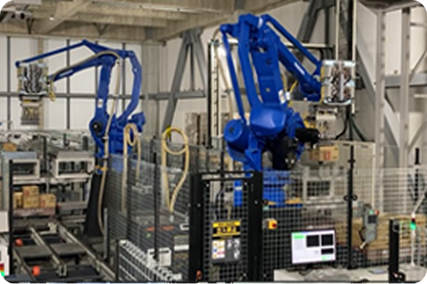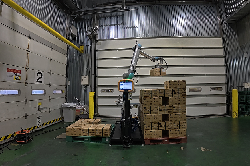 冷凍品のパレットでの輸送率を高めるために、積替えロボットの導入を進めています。現在、実証実験を行なっています。