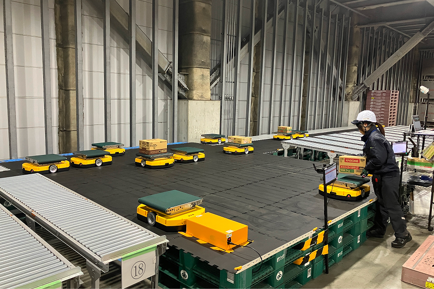 商品仕分作業の属人化の解消を目的に、AGVによる商品仕分システムを導入しました。